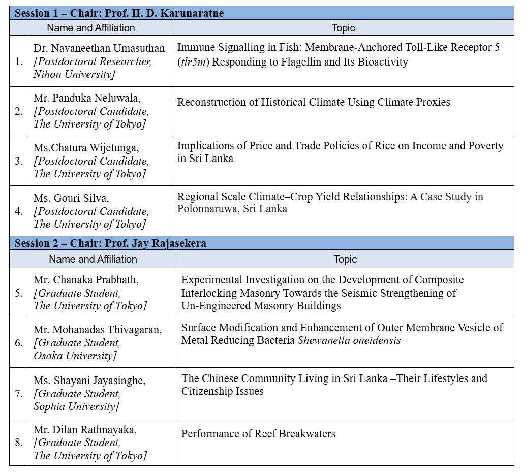 The SLSAJ Research Conference is organized on an annual basis to provide its members an opportunity to present their research findings in front of academics, fellow colleagues, and members of the Sri Lankan community living in Japan. We cordially invite all our members and honorary members to join the conference to disseminate your specialized knowledge and contribute to your respective fields among others.