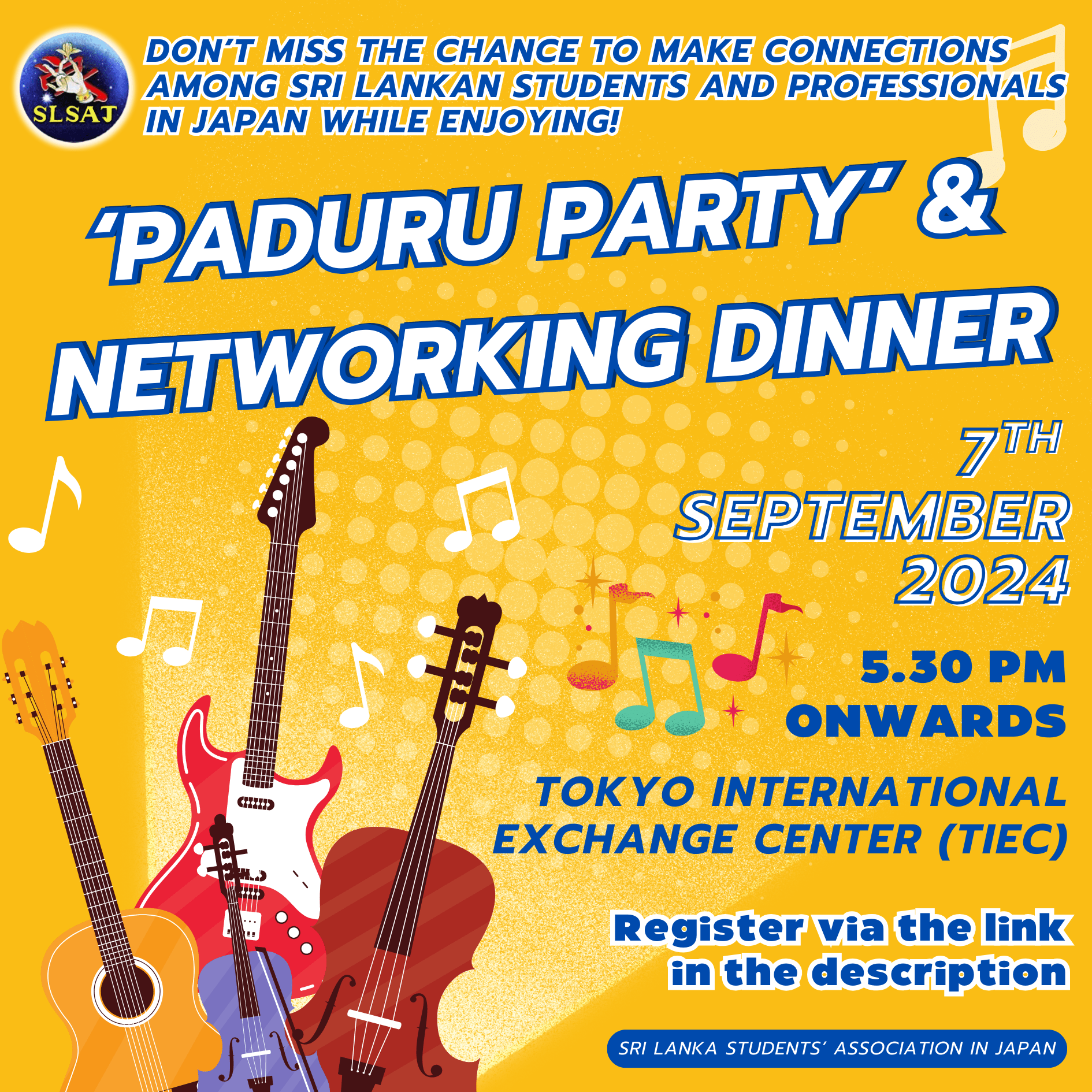 The Sri Lanka Students’ Association in Japan (SLSAJ) organized a “Paduru Party” and networking dinner, where Sri Lankan graduate students and professionals from diverse fields came together to create meaningful connections. They enjoyed unlimited food and immersed themselves in the harmonious atmosphere as the SLSAJ built bridges for future collaboration.