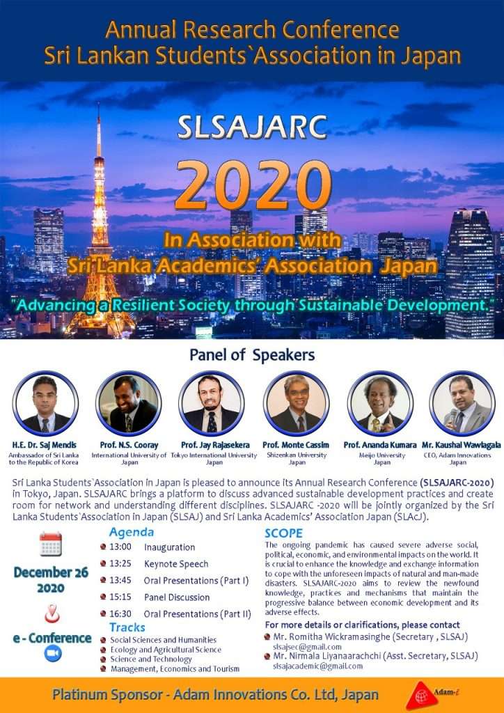 Annual Research Conference of Sri Lankan Students`Association Japan 2020 (SLSAJARC 2020) in collaboration with Sri Lanka Academics Association Japan SLSAJARC-2020 Sri Lanka Students`Association in Japan is pleased to announce its Annual Research Conference…